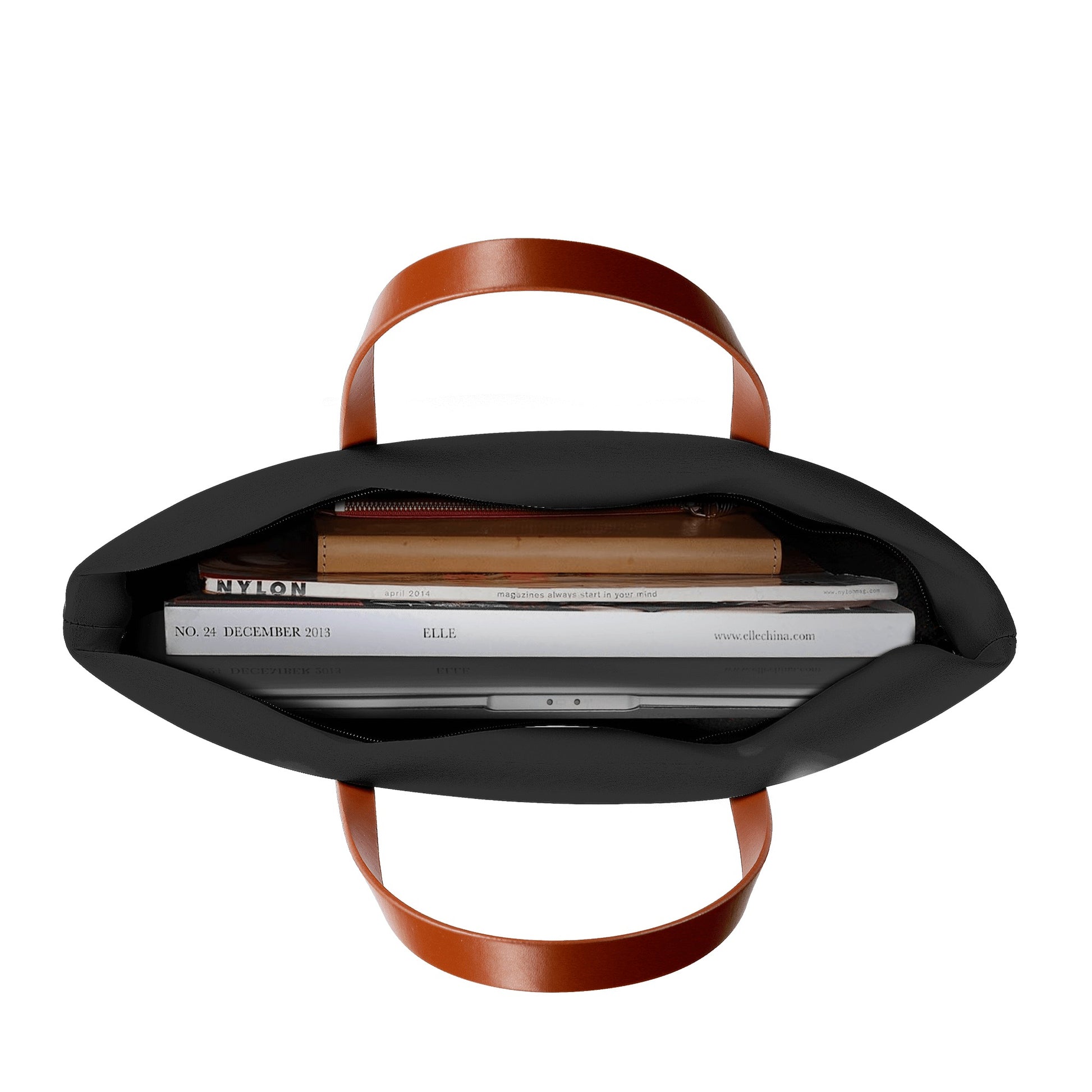 Crafted from premium diving cloth material, this tote is designed to withstand the hustle and bustle of daily life while keeping your essentials secure with its sturdy zip closure. The large interior compartment, complemented by an additional interior pocket, provides ample space for all your items – from books and tablets to makeup and wallets. The sleek PU leather handles offer a comfortable grip, making it perfect for everyday use, whether you're heading to work, class, or a casual meetup.
