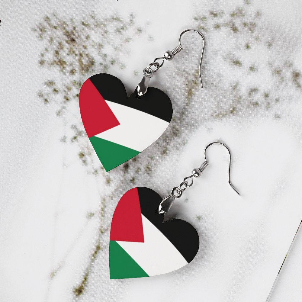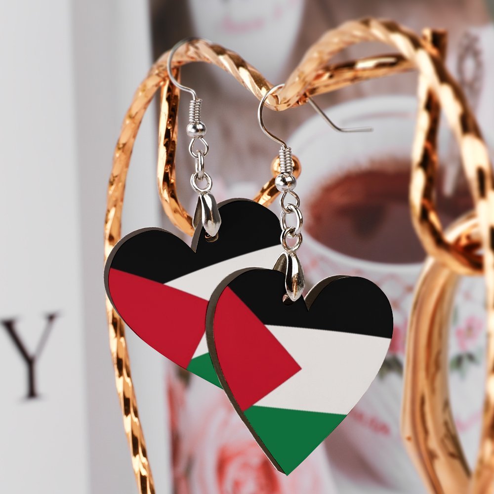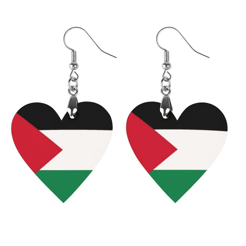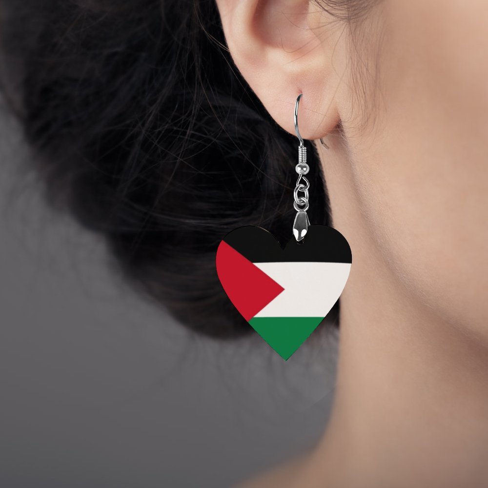 Design: With a length of 5.5 cm and a width of 3 cm, these earrings boast a striking round shape adorned with the Palestinian Flag. The design exudes elegance and sophistication, adding a touch of glamour to any ensemble. Each piece is meticulously laser-cut, ensuring a smooth surface without any rough edges, making them comfortable to wear for extended periods.