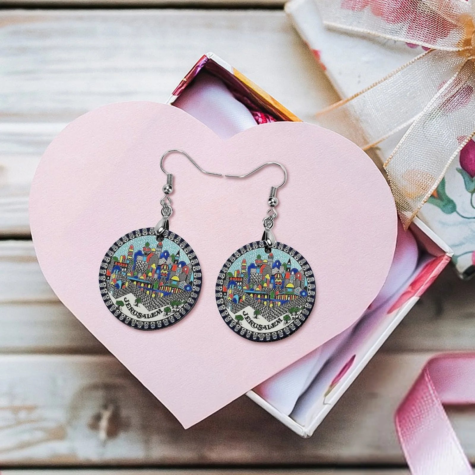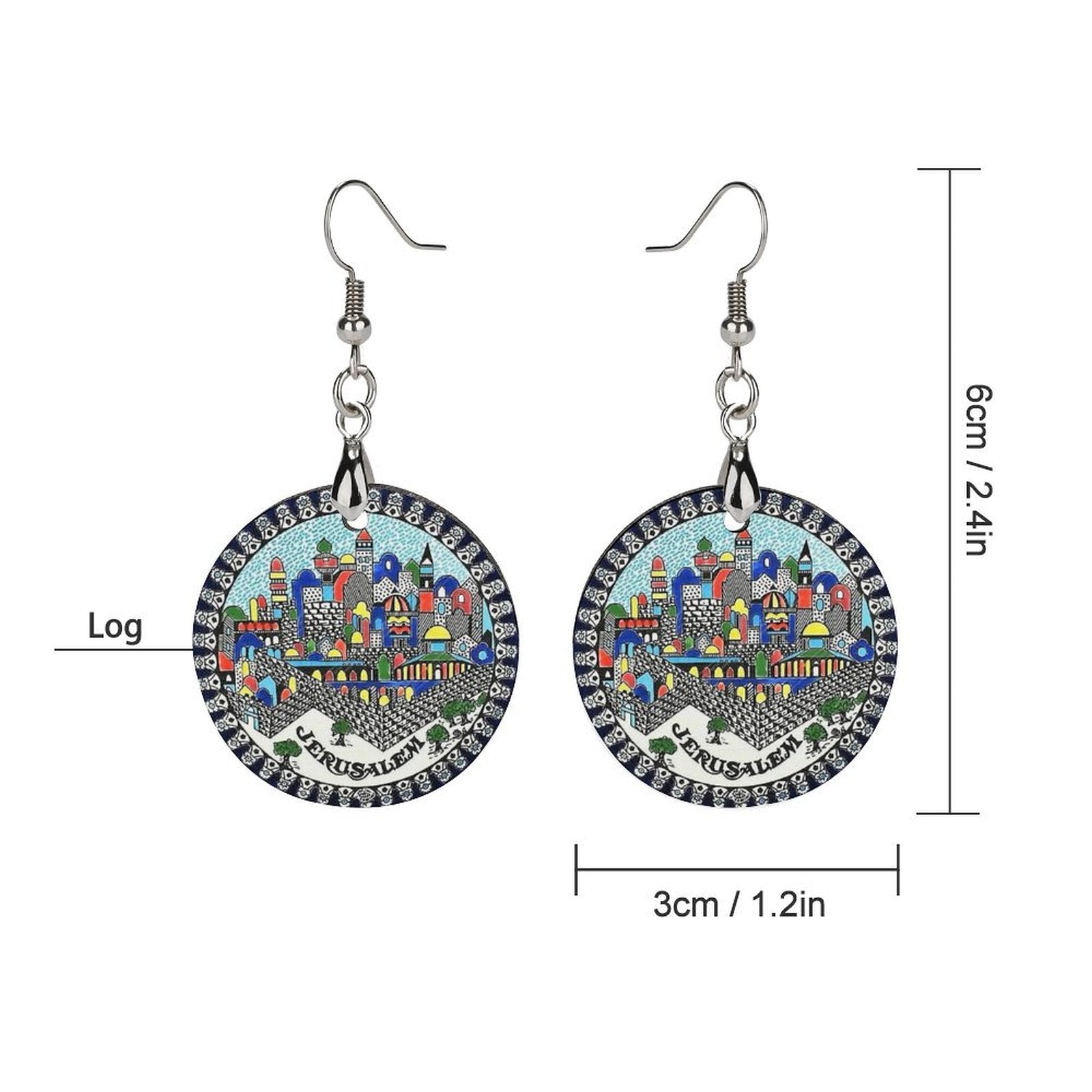 Embrace elegance and cultural charm with these Jerusalem Palestinian Wooden Earrings Pendants, featuring two-sided printing and a striking round shape with a brick design. Made from natural wood and copper plated with white K, these earrings are lightweight, smooth, and comfortable to wear, making them the perfect accessory for any occasion.